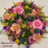 Mooie kleurijke bloementaart ‘Pink lady’ ‘ vrolijke kleurencompositie van romantische bloemen verwerkt als bloementaart , makkelijk te verzorgen en staat ook lang , in 3 (14/22/30 cm) maten te bestellen incl onderbord , de getoonde bloemenkeuze kan door de seizoensinvloeden afwijken